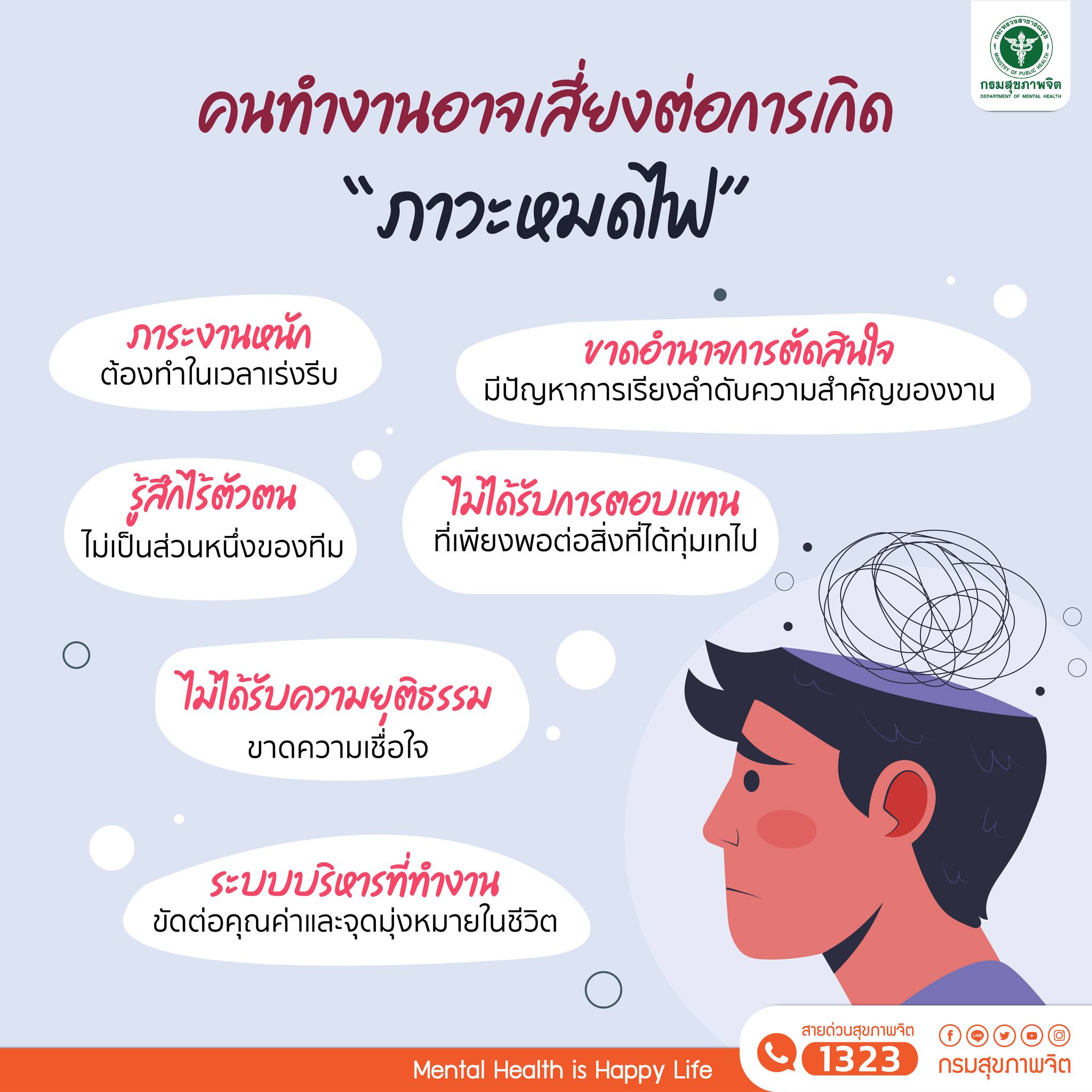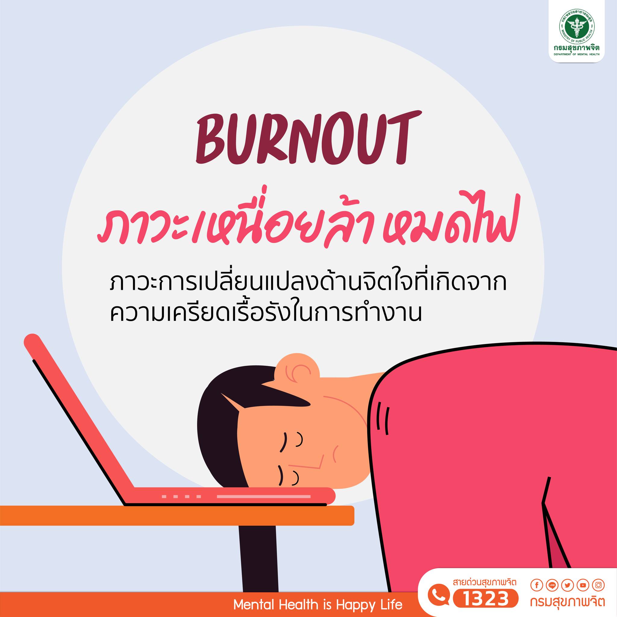 ภาวะหมดไฟในการทำงาน (burnout syndrome) ไม่ใช่โรคซึมเศร้าแต่เกิดจากการเปลี่ยนแปลงด้านจิตใจที่เกิดจากความเครียดเรื้อรังในการทำงาน